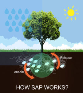 سوپر جاذب در خاک، آب را همراه با کودهای محلول در آن، جذب کرده و بنا بر تقاضای ریشه در اختیار آن قرار می دهد.