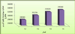 که این یعنی بالا بردن دور آبیاری به میزان 45 درصد. و حجم آب مصرفی از 9449 متر مکعب برای یک دوره رشد به 6608 متر مکعب برای یک دوره رشد رسید و این یعنی کم کردن 42 درصد از حجم آب مصرفی برای یک دوره رشد.